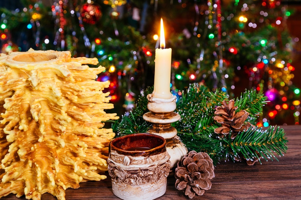 シャコティスは、結婚式や誕生日パーティーなどの特別な祝いごとのときに出されることが多く、今の季節だとクリスマスを祝うために家庭でも用意されることもあります。トゲトゲした独特の見た目のシャコティスですが、チョコレートや花でデコレーションされた後、皆で手でちぎって食べることが多いようです。リトアニア旅行の際は、是非本場のシャコティスをご賞味あれ♪