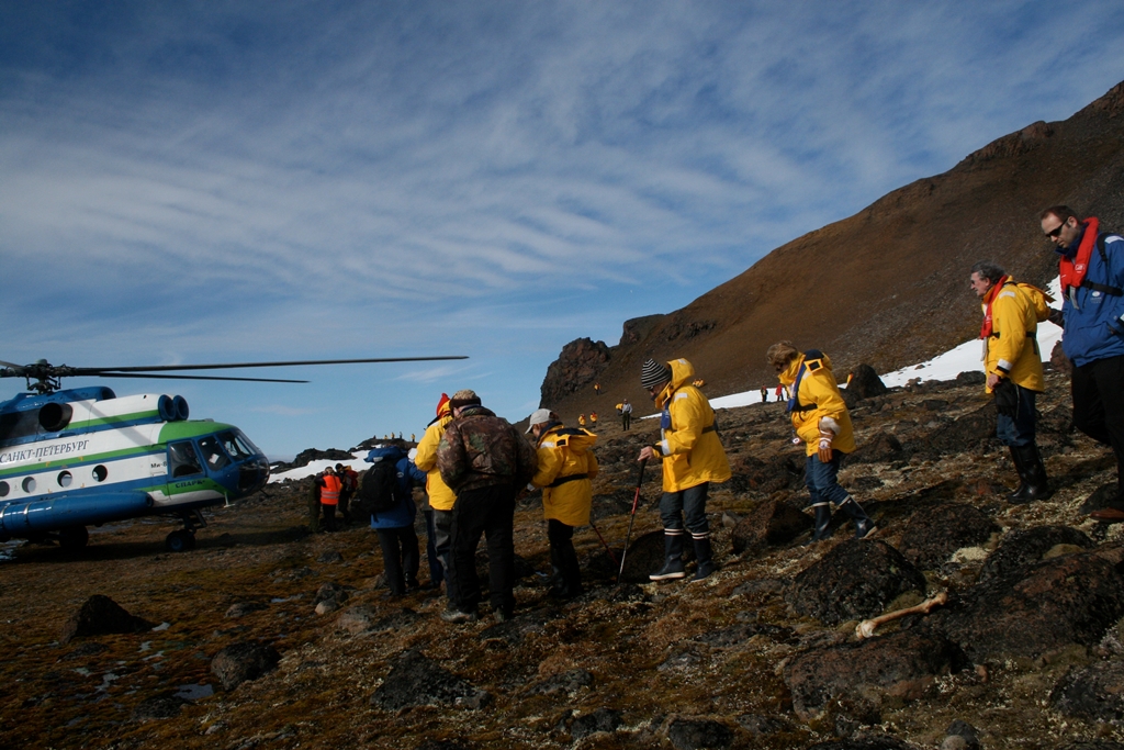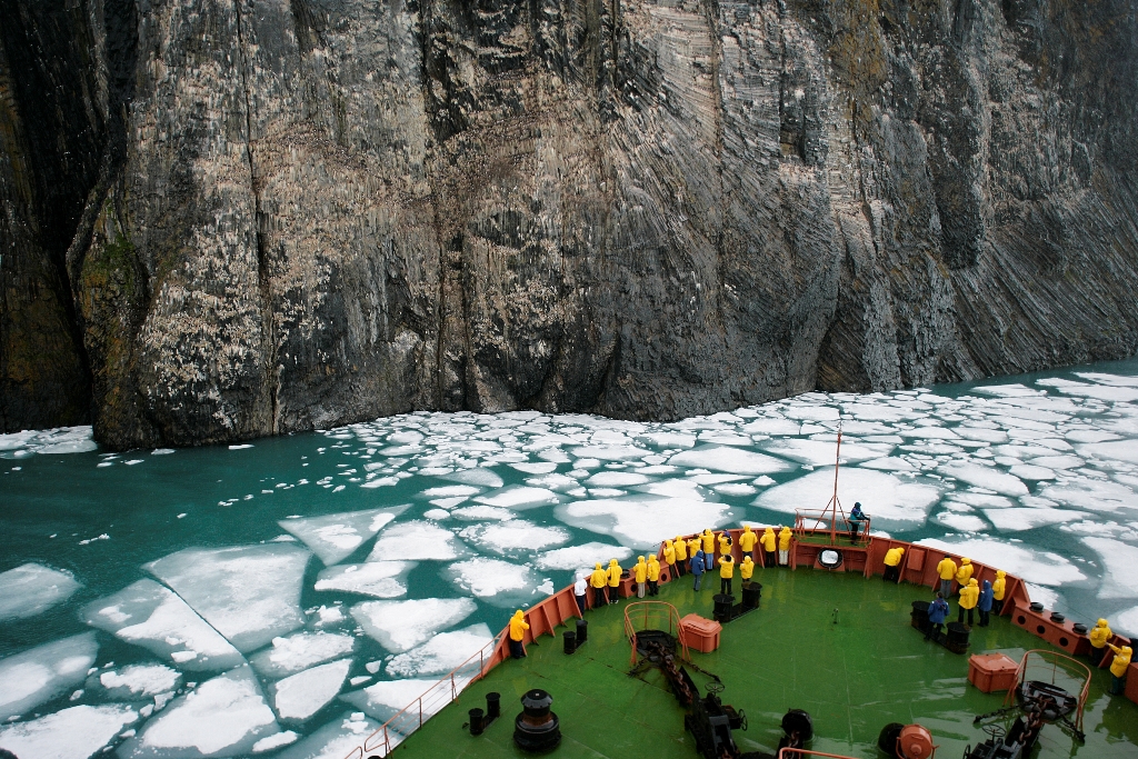 かつて島の先端のフローラ岬は北極探検の終結点でした。 ゾディアックボートで断崖の海鳥コロニーを見学します。 (天候や流氷の状況が良好な場合に限ります) ヘリコプター遊覧も予定しております。 (天候や流氷の状況が良好な場合に限ります) 朝食:〇 昼食:〇 夕食:〇 |
