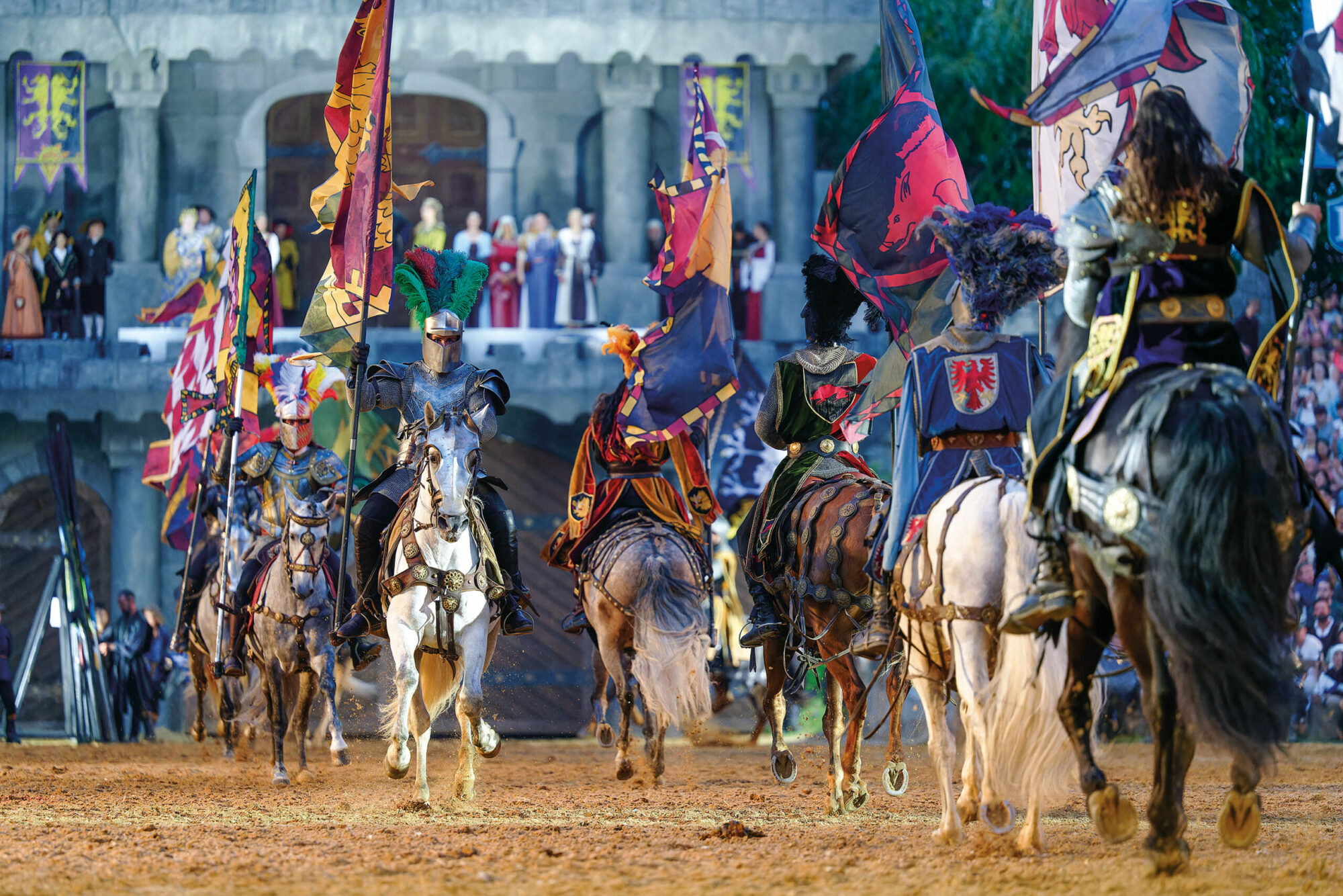 🌟「曲芸師の夜」金曜日(7/10)のスケジュール(予定) 17:00 開場 20:00 パレード★この日は騎士ショーはありません。 2:00am 全プログラム終了 2:30am(予定) 待ち合わせ場所に送迎車が参ります。 🌟金曜日(7/17、7/24)のスケジュール(予定) 17:00 開場 19:00 パレード 21:00~23:00 騎士ショー上演 1:30am 全プログラム終了 2:00am(予定) 待ち合わせ場所に送迎車が参ります。 🌟土曜日(7/11、7/18、7/25)のスケジュール(予定) 16:00 開場 18:00 パレード 20:00~22:00 騎士ショー上演 0:30am 全プログラム終了 1:00am(予定) 待ち合わせ場所に送迎車が参ります。 🌟日曜日(7/12、7/19、7/26)のスケジュール(予定) 12:00 開場 14:00 パレード 16:00~18:00 騎士ショー上演 20:30 全プログラム終了 21:00(予定) 待ち合わせ場所に迎車が参ります。 イベント終了後、送迎車にてミュンヘンのご宿泊ホテルへお送りいたします。 |
